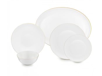 سرویس 27 پارچه چینی استخوانی طرح خط طلا گرد