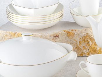 سرویس 92 پارچه چینی استخوانی طرح خط طلا گرد