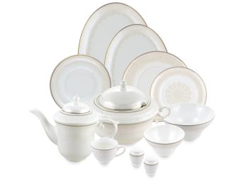 سرویس 92 پارچه چینی استخوانی طرح خط طلا گرد